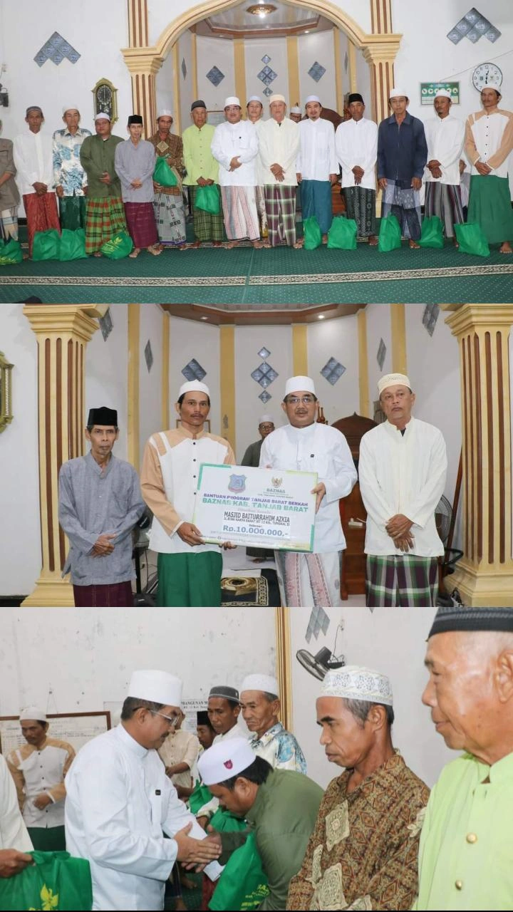 Sebagai bentuk dukungan dan kepedulian, Bupati menyerahkan bantuan sebesar Rp 10 juta dari BAZNAS Tanjabbar. Bantuan ini diharapkan dapat digunakan untuk memperbaiki dan meningkatkan fasilitas masjid. Selain itu, Bupati juga memberikan bantuan sembako kepada para lansia, kaum duafa, dan anak yatim.