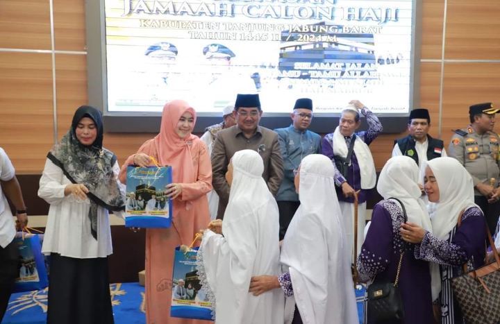 “Atas nama Pemerintah Daerah Kabupaten Tanjung Jabung Barat, saya mengucapkan selamat kepada Bapak-Ibu yang mendapat berkah luar biasa untuk menunaikan ibadah haji pada tahun 2024 ini,” tutur Bupati.