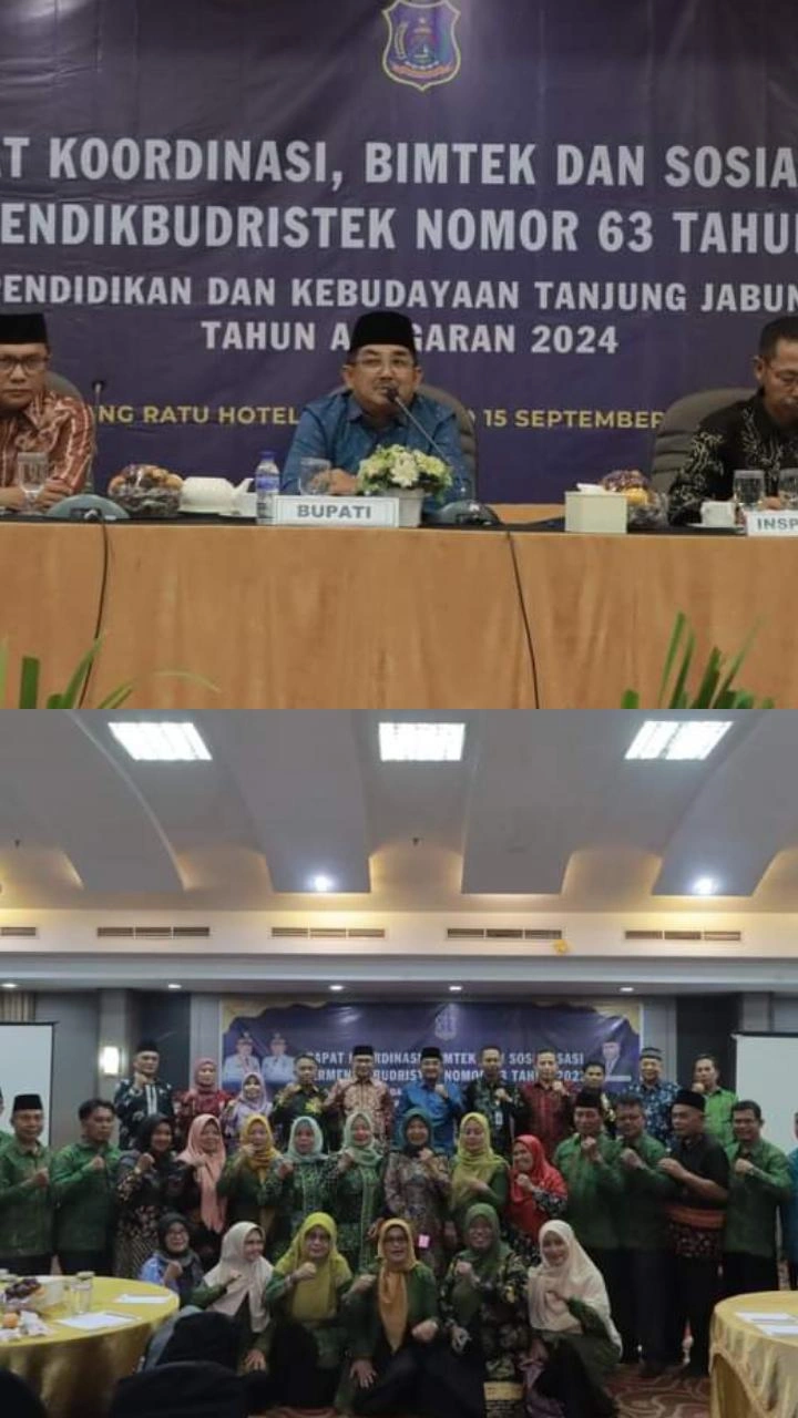 TANJAB BARAT – Pengelolaan dana yang transparan dan akuntabel menjadi kunci dalam meningkatkan kualitas pendidikan di Kabupaten Tanjung Jabung Barat. Untuk mewujudkan hal tersebut, Bupati Tanjung Jabung Barat, Drs. H. Anwar Sadat, M.Ag., secara resmi membuka Rapat Koordinasi, Bimbingan Teknis, dan Sosialisasi Permendikbud Ristek Nomor 63 Tahun 2023 tentang Petunjuk Teknis Pengelolaan Dana Bantuan Operasional Satuan Pendidikan (BOSP). Jumat malam (13/9/2024).