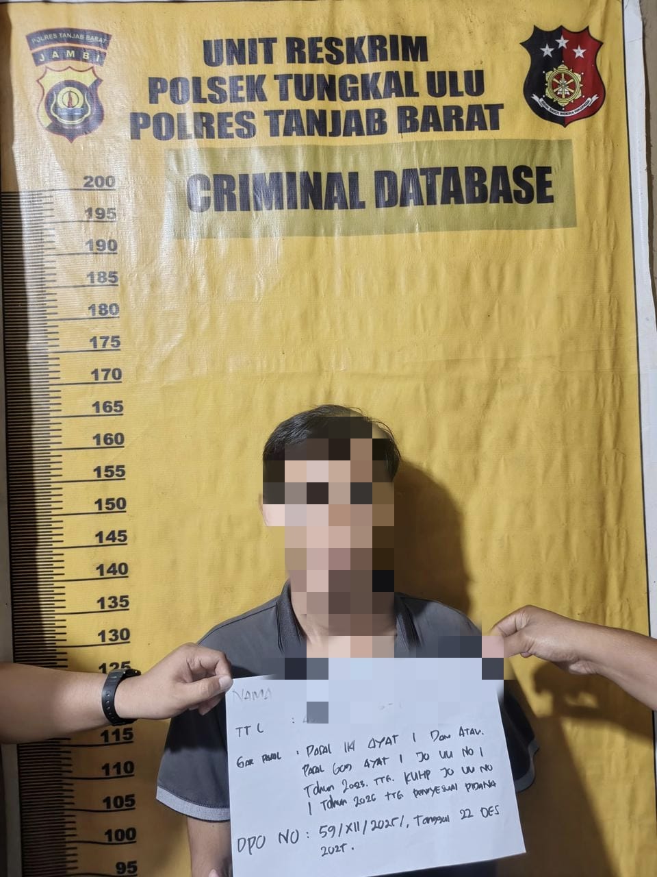 Tersangka diringkus di kawasan Jalan Lintas Timur, Desa Sungai Penoban, Kecamatan Batang Asam, Rabu (25/2/2026) sore.