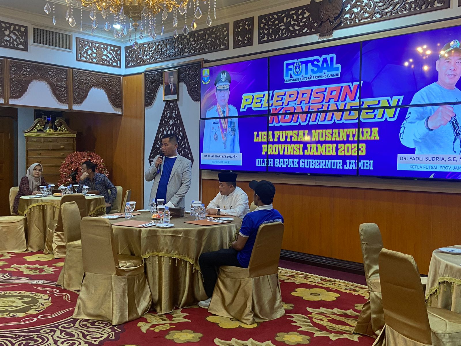 AL HARIS DIDAMPINGI FADLI SUDRIA LEPAS KONTINGEN FUTSAL JAMBI UNTUK BERLAGA LIGA FUTSAL NUSANTARA