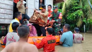 “Alhamdulillah, berkat kerja sama dan upaya kita semua, masyarakat dapat cepat tertolong, harapan saya kedatangan kita dapat memberikan sedikit bantuan kepada saudara kita yang sedang tertimpa banjir”, Ujar Dandim. (Penrem 042Gapu)