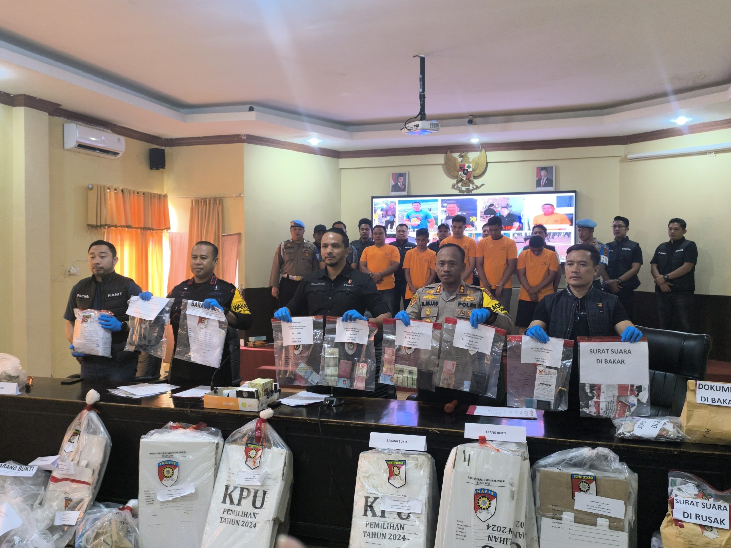 Jambi – Tim Resmob Polda Jambi dan Opsnal Polres Kerinci, berhasil menangkap 4 orang pelaku pengerusakan kotak suara di TPS Kota Sungai Penuh.