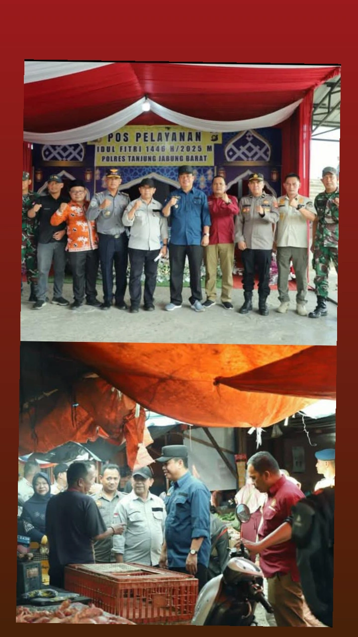 Tanjab Barat,Sudutjambi.com – Dalam rangka memastikan ketersediaan, harga, dan kondusifitas pasar menjelang Hari Raya Idul Fitri 1446 Hijriah, Wakil Bupati Tanjung Jabung Barat, Dr. H. Katamso, SA.SE.ME, bersama jajaran terkait melakukan peninjauan langsung ke Pasar Tanggo Rajo di Kuala Tungkal. Kamis (27/03).