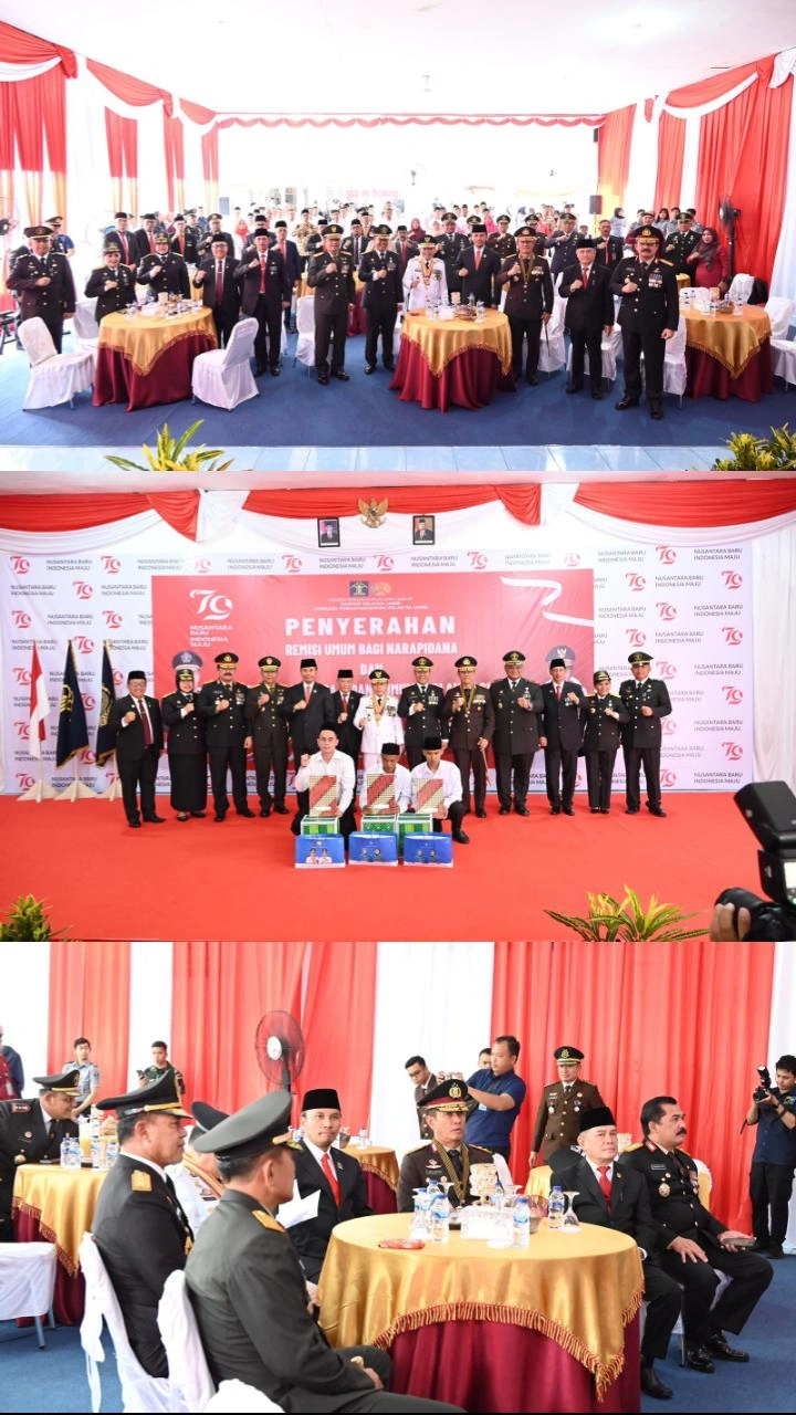 Jambi – Kapolda Jambi Irjen Pol. Rusdi Hartono dampingi Gubernur Jambilakukan penyerahan remisi kepada Narapidana Lapas Kelas IIA Jambi pada Sabtu, (17/08/2024)