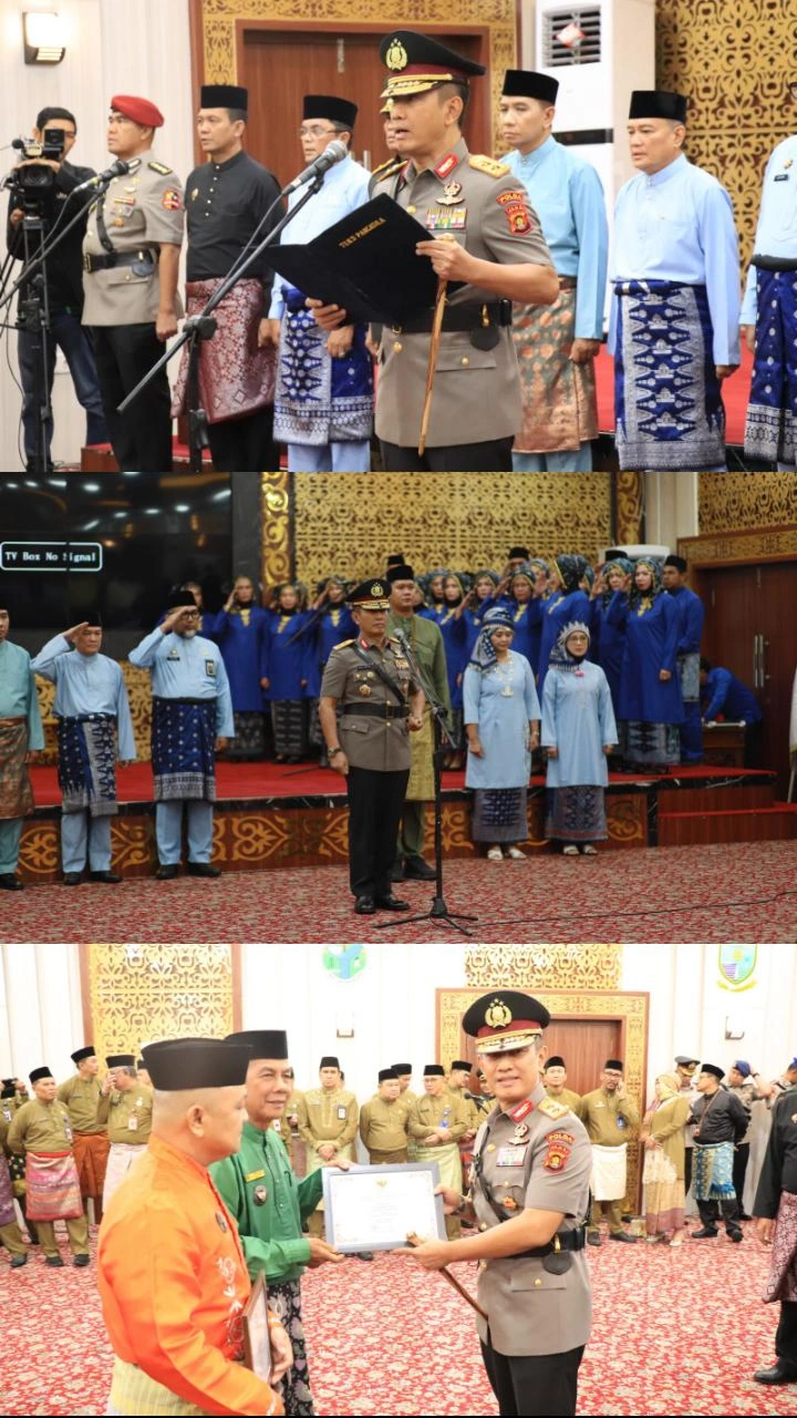 Dibacakan juga oleh Kapolda Jambi bahwa Gubernur Jambi menyampaikan sangat mengapresiasi pelaksanaan Pemilihan umum Februari 2024 dan pemilihan kepala daerah serentak November 2024 yang telah kita laksanakan secara lancar aman dan damai terima kasih kepada KPU, Bawaslu, TNI dan Polri serta seluruh masyarakat provinsi Jambi kita telah berhasil membuktikan bahwa dalam perbedaan pilihan apapun kita tetap bisa menjaga persaudaraan menjaga kerukunan.