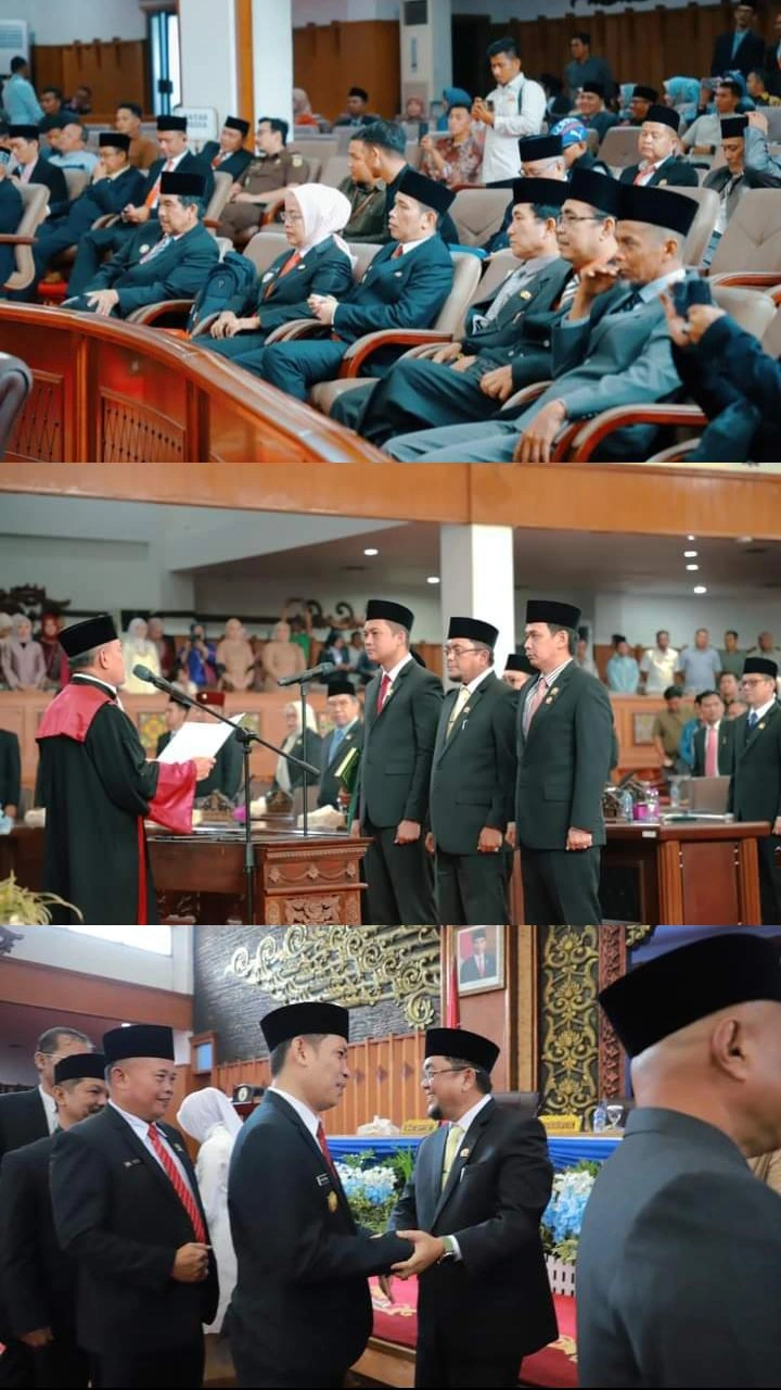 Jambi – Suasana penuh hikmat dan haru mewarnai acara Peresmian dan Pengucapan Sumpah Janji Pimpinan DPRD Provinsi Jambi Masa Jabatan 2024-2029 di Ruang Rapat Paripurna DPRD Provinsi Jambi, Sabtu (19/10/2024).