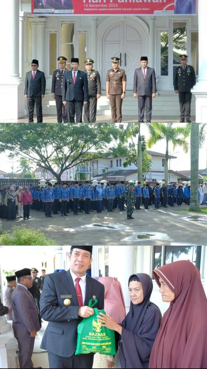 Tanjab Barat – Pemerintah Kabupaten Tanjung Jabung Barat menggelar upacara peringatan Hari Pahlawan di halaman Kantor Bupati Tanjab Barat. Minggu (10/11/2024).