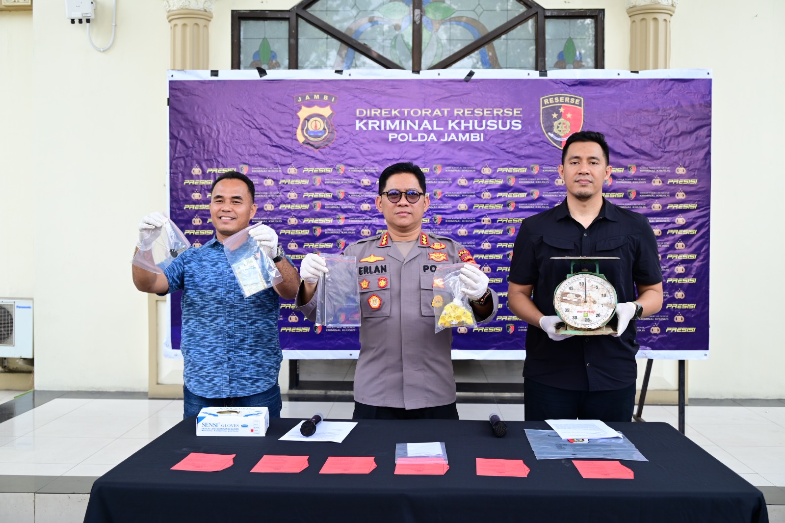Konferensi pers yang dilaksanakan pada Selasa, (10/02/2026) di Lobby Gedung B Mapolda Jambi ini dipimpin oleh Kabid Humas Polda Jambi Kombes Pol. Erlan Munaji dan di dampingi oleh Kasubdit Indagsi Ditreskrimsus Polda Jambi AKBP Hernawan Riski