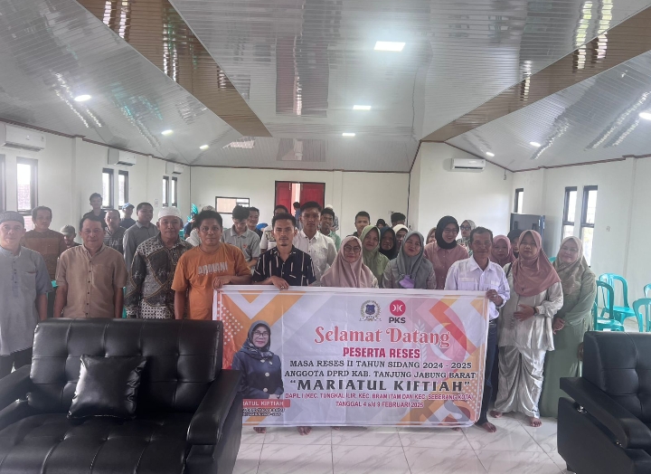 Tanjab Barat, Sudutjambi.com – Memasuki masa Reses ke-II tahun sidang 2024/2025, Anggota DPRD Kabupaten Tanjung Jabung Barat (Tanjab Barat) dari Partai Keadilan Sejahtera (PKS), Mariatul Kaftiah, aktif turun ke masyarakat di Daerah Pemilihan (Dapil) I. Reses yang berlangsung selama enam hari, dari 4 hingga 9 Februari 2025, mencakup wilayah Kecamatan Tungkal Ilir, Bram Itam, dan Seberang Kota.