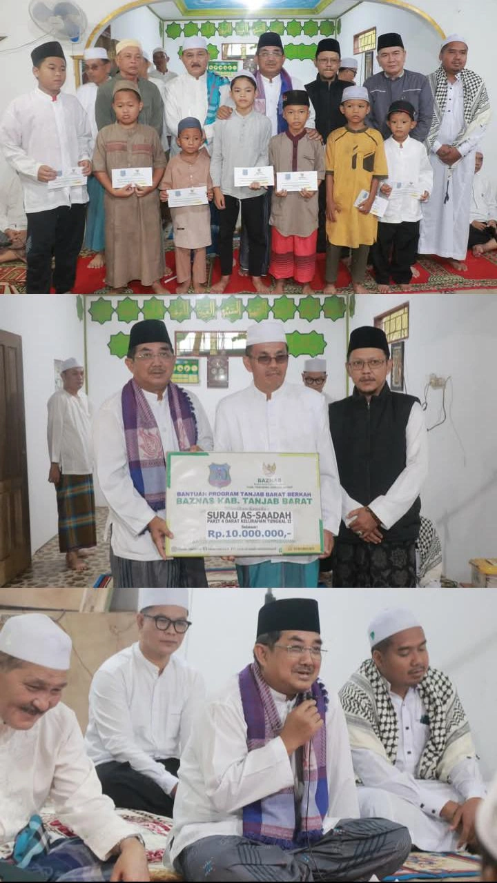 Sebagai bentuk kepedulian, Bupati turut menyalurkan bantuan senilai Rp10.000.000 untuk Surau As-Sa’adah, santunan untuk anak-anak yatim, paket sembako bagi lansia, serta bantuan untuk takmir masjid. Bantuan ini bersumber dari dana yang dikelola BAZNAS Tanjab Barat.