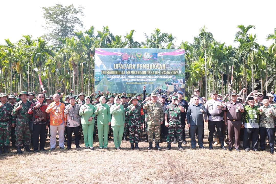 SUDUTJAMBI.COM ,Tanjab Barat – Komitmen untuk mempercepat pembangunan di daerah kembali ditegaskan melalui gelaran TNI Manunggal Membangun Desa (TMMD) ke-124 yang resmi dibuka di Kecamatan Bram Itam, Selasa (06/5/2025).