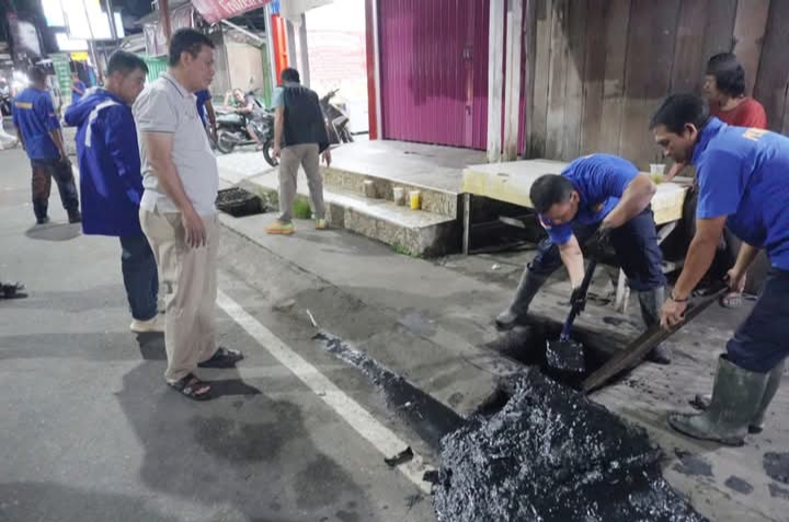 Tanjab Barat,Sudutjambi.com – Wakil Bupati Tanjung Jabung Barat, Dr. H. Katamso, SA., SE., ME., turun langsung memantau kegiatan pembersihan drainase di sepanjang Jalan Jenderal Sudirman, Kuala Tungkal, Kamis malam (17/4).